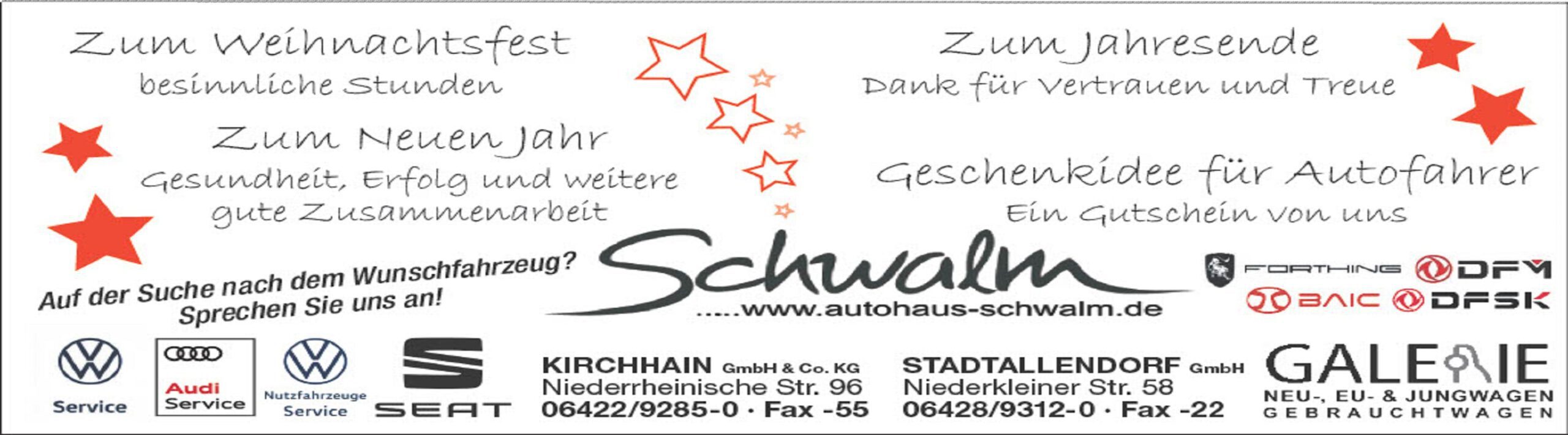 Als inhabergeführtes Automobil-Handels-Unternehmen bietet Ihnen das Autohaus Schwalm ein dynamisches und wachstumsorientiertes Arbeitsumfeld. An 2 Standorten leisten wir für unsere Kunden erstklassigen Service und ein Plus an Leistungserfüllung. Ein Anspruch, dem sich unsere Mitarbeiter täglich gerne stellen.